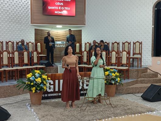 A noite foi abrilhantada por momentos de louvor inspiradores, com a participação das cantoras Tayna e Geane, além de Andréia, Naiana Reis, Salatiel Fros e diversos cantores locais e regionais. Um dos pontos altos foi a apresentação do grupo de Senhores, que entoou belos hinos de adoração a Deus, ministrando profundamente aos corações dos presentes com louvores cheios de unção e mensagem.